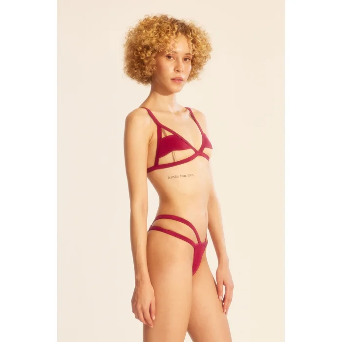 Sole Bikini Top stands out with its spaghetti strap triangle cut and mesh details, creating a sexy design. This top allows you to showcase elegance and confidence on the beaches.