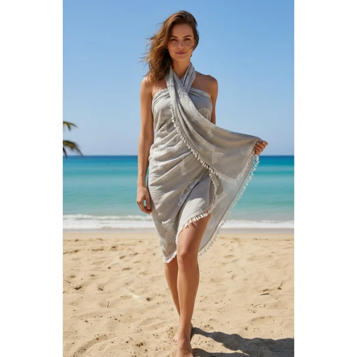 • Versatile Use: As seen in the model, you can wear it as a halter neck dress, a skirt wrapped around your waist, a shawl by taking it over your shoulders, or directly as a beach towel/cover.