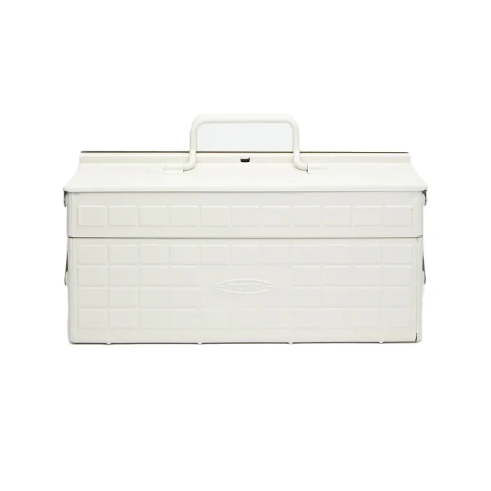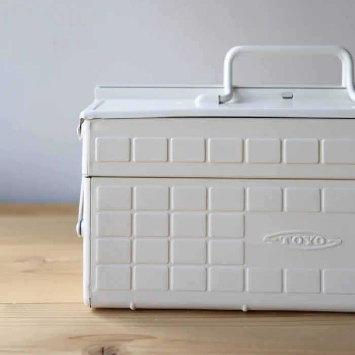 Everyone needs a mechanic's tool chest. Based on Keiyu Hisashi's design dating back to 1947, this rugged, classic ST-350 tool roof is ideal for home use. It is made of sturdy stamped steel and opens in a single smooth movement, pulling the levers. It has removable dividers for things like screws, nails, pliers, etc. The large area at the bottom provides space for larger tools such as hammers, pegs, or anything else with a long handle, and thanks to its timeless enamel coating, you don't have to hide your toolbox, it blends in like a decorative object.