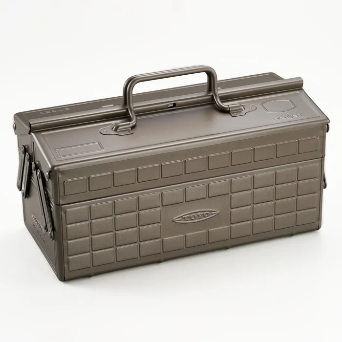 Everyone needs a mechanic's tool chest. Based on Keiyu Hisashi's design dating back to 1947, this rugged, classic ST-350 tool roof is ideal for home use. It is made of sturdy stamped steel and opens in a single smooth movement, pulling the levers. It has removable dividers for things like screws, nails, pliers, etc. The large area at the bottom provides space for larger tools such as hammers, pegs, or anything else with a long handle, and thanks to its timeless enamel coating, you don't have to hide your toolbox, it blends in like a decorative object.