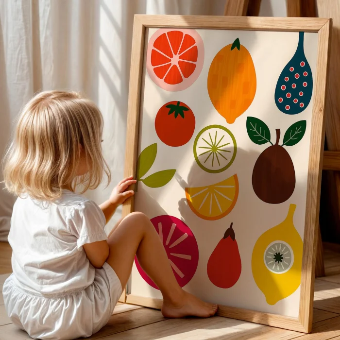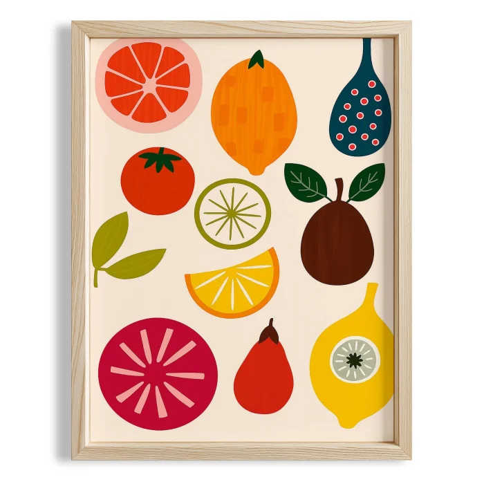 Product: Meyveler Kolajı - Eclectic Style Girls' Room Decor Wooden Framed Wall Art