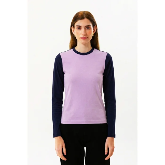 Product: Crew Neck 100% Organic Cotton Dusty Pink - Anthracite Contrast Blouse