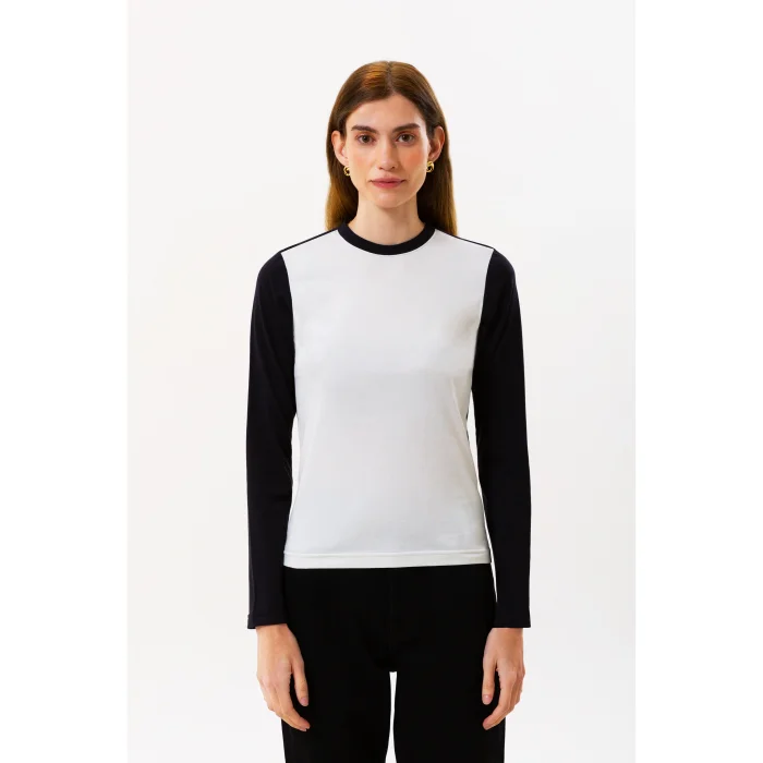 UNIQVIBE - White Crew Neck 100% Organic Cotton Dusty Pink - Anthracite Contrast Blouse | hipicon