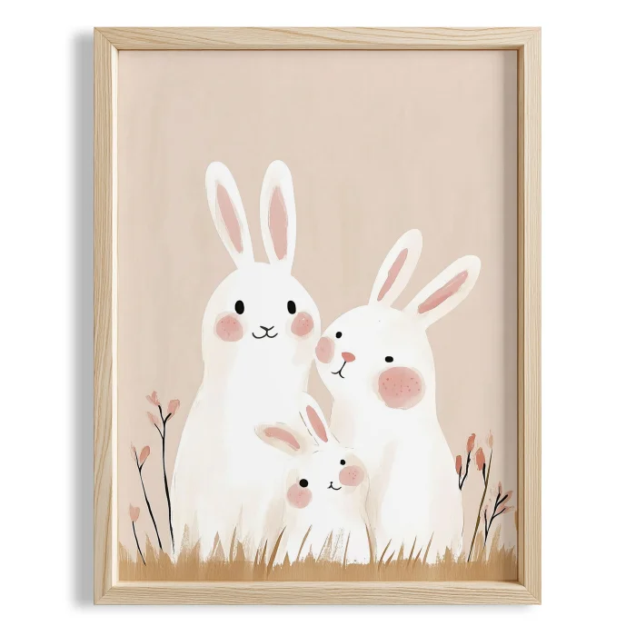 Product: Mutlu Rabbit Ailesi Boho Girls' Room Wooden Wall Art