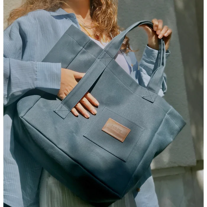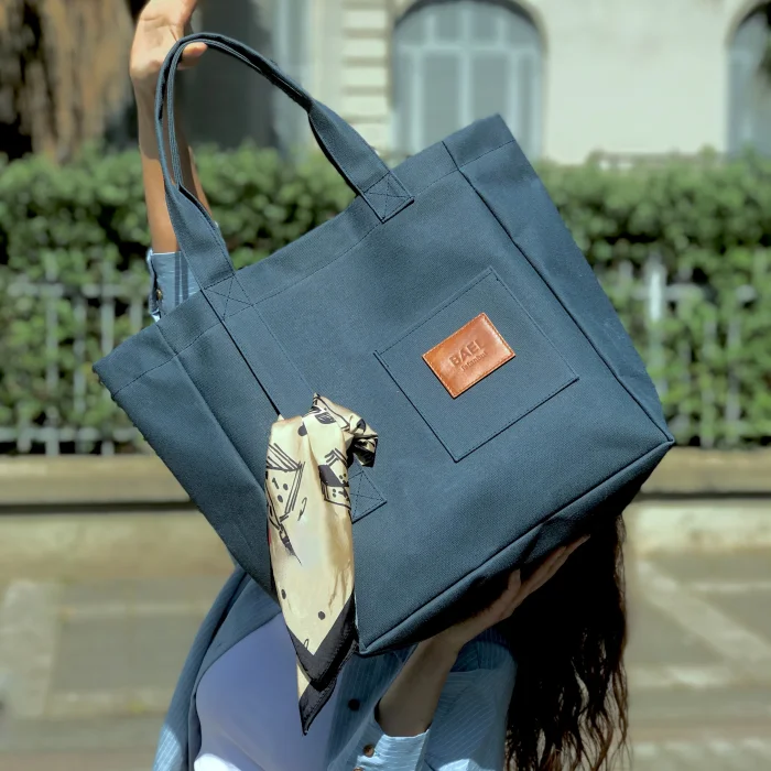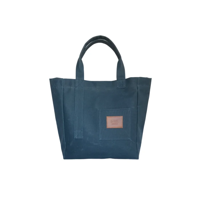 Fabric, densely woven cotton waxed canvas. The main compartment closes with a magnet. There's a port on the inside for hanging a switch, headphones, or tiny bag . A zippered inner pocket compartment for your valuables. 'Bael Istanbul' logo on the inner pocket. Bellows bottom for large volume. A pocket compartment with a leather logo design on the front for your small items. Leather 'Bael Istanbul' logo on the front. Handle extension to which you will tie your belongings, such as a scarf. waterproof. Height: 36 cm Width: 45 cm Bellows: 14 cm Handle length: 20 cm