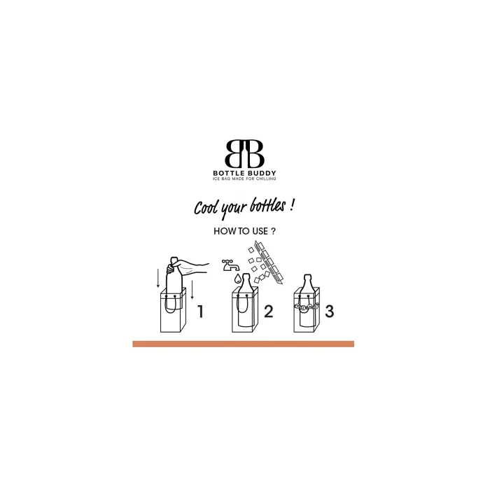 Bottle Buddy ice bag is an eco-friendly, recyclable and reusable carry bag that allows you to quickly chill your favorite beverage. It’s strong, sturdy, durable and folds effortlessly for easy storage and packing.