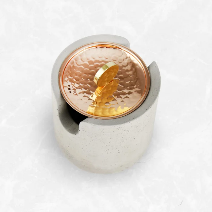 Product: Concre Theraypy Incense Bowl With Hammered Copper Cover