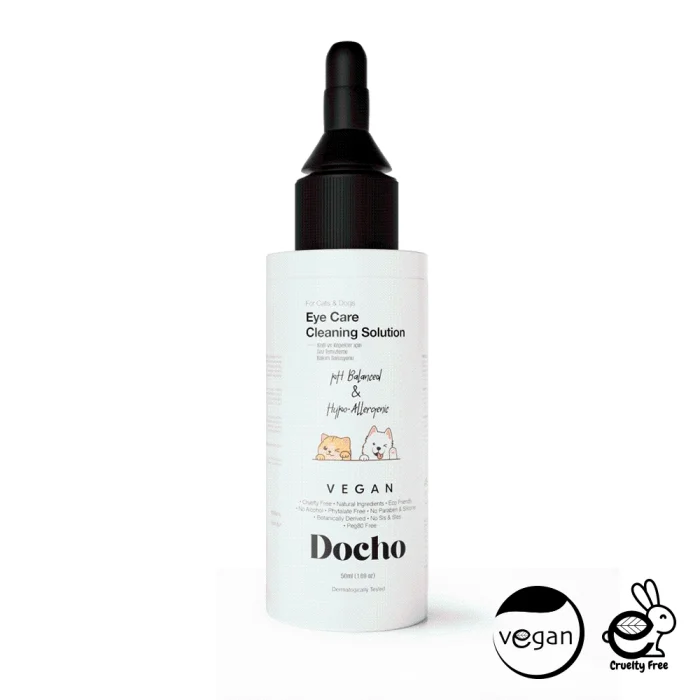 Docho Cat and Dog Eye Cleaning and Care Solution is a product prepared for use in the eye care of cats and dogs. Thanks to the nutritious special active extracts it contains, it offers intense moisturizing comfort and helps to clean the eye area without damaging healthy tissues. It also plays an important role in the healing of damaged tissues, if any. Since the solution is formulated with a neutral pH value, it does not cause any reaction in the application area, maintains the moisture balance around the eyes and cleans the deposits caused by eye discharge.