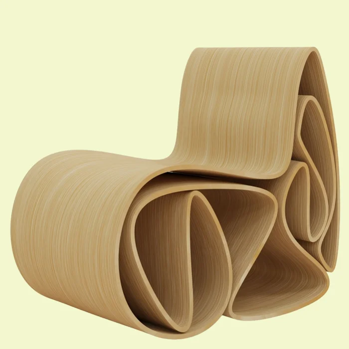 The piece is produced with large-scale 3D printing technology using recyclable materials. Its layered texture provides both lightness and structural strength while giving the product a distinctive identity. The organic curvature supports the body’s natural posture, offering a calm and contemplative seating experience.