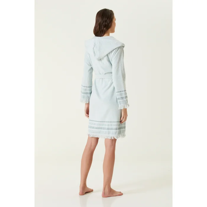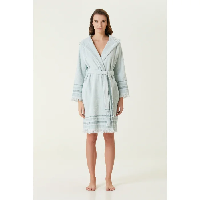 100% Turkish Cotton: Our bathrobes, which are made of quality Turkish cotton, stand out with their durability and natural softness. High Volume: Its high volume emphasizes the quality texture of our bathrobes. It offers a comfortable experience every time it is worn. ; High Absorbency: The high absorbency of our bathrobes provides maximum comfort after bathing and helps you dry quickly. ; Fast Drying: Thanks to its absorbency, it dries quickly and protects your skin and offers a comfortable post-bath experience. ; It is 340 gr/m². ; Model size: Height: 180 cm - Bust: 76 cm- Waist: 61 cm - Hips: 90 cm