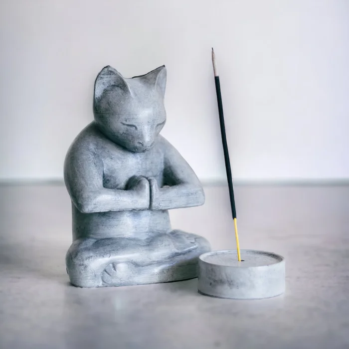 Product: Concrete Meditation Cat Figurine And Incense Holder