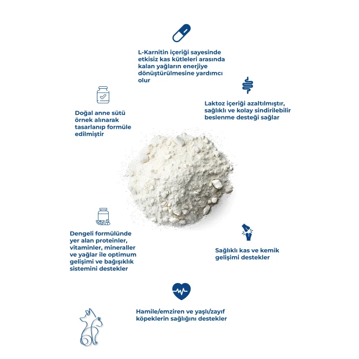 4.     Easy Digestion: Carefully selected ingredients are gentle on the puppies' digestive system, reducing digestive upsets and promoting optimal nutrient absorption, increasing bioavailability. To prevent diarrhea, the lactose content is reduced. Thus, it provides a healthy and easily digestible diet.