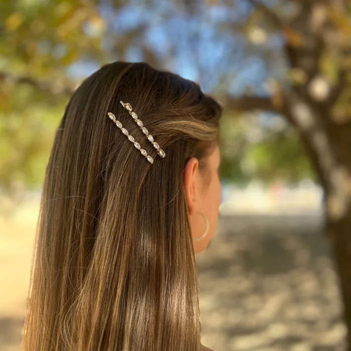 Stone bobby pins in a set of two – offering minimal elegance and shine in one.