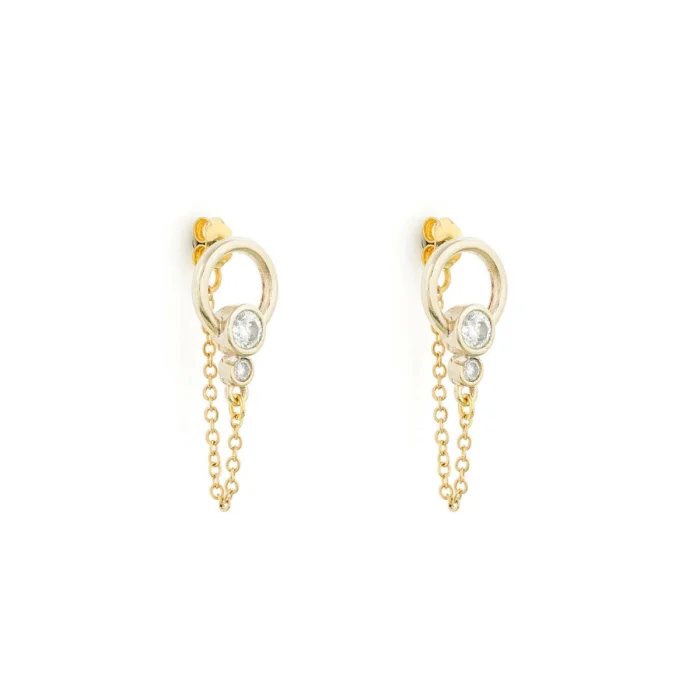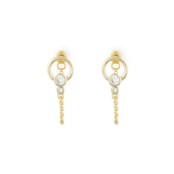 The elegant sparkle of zircon stones and the modern interpretation of the circular form come together: Orbit Drop Earrings capture the light with every step with its moving chain detail. Ideal for complementing your everyday style with a touch of sophistication or adding a subtle glow to your evening chic. While it offers comfortable use with its light structure, it is a candidate to be the favorite of those who care about details.