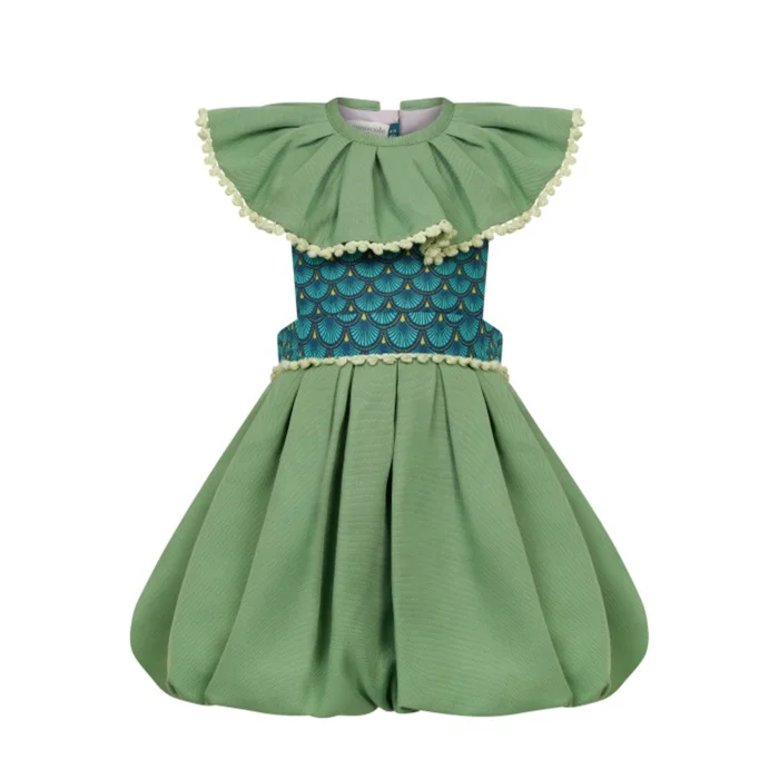 It's a unique design for stylish toddler girls who wants to be elegant and comfortable at the same time. The main fabric of the product is Lyocell which is made with wood pulp from sustainable tree farms. With it's breathable texture the fabric is loose, soft and antibacterial. Material: Main Fabric: 100% Lyocell (Tencel) and 100% Cotton combination. Inner Lining: 100% Lyocell (Tencel) and 100% Cotton combination.