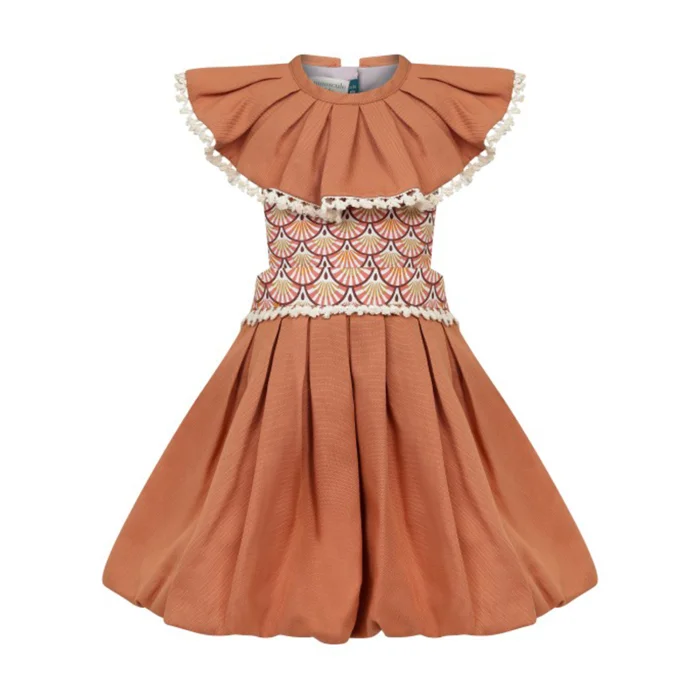 It's a unique design for stylish toddler girls who wants to be elegant and comfortable at the same time. The main fabric of the product is Lyocell which is made with wood pulp from sustainable tree farms. With it's breathable texture the fabric is loose, soft and antibacterial. Material: Main Fabric: 100% Lyocell (Tencel) and 100% Cotton combination. Inner Lining: 100% Lyocell (Tencel) and 100% Cotton combination.
