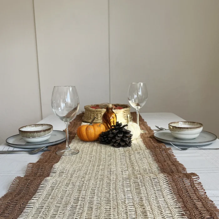 Material: Paper rope Size: 45 cm x 180 cm It is produced by hand knitting with crochet. Shipping time is 5 working days.