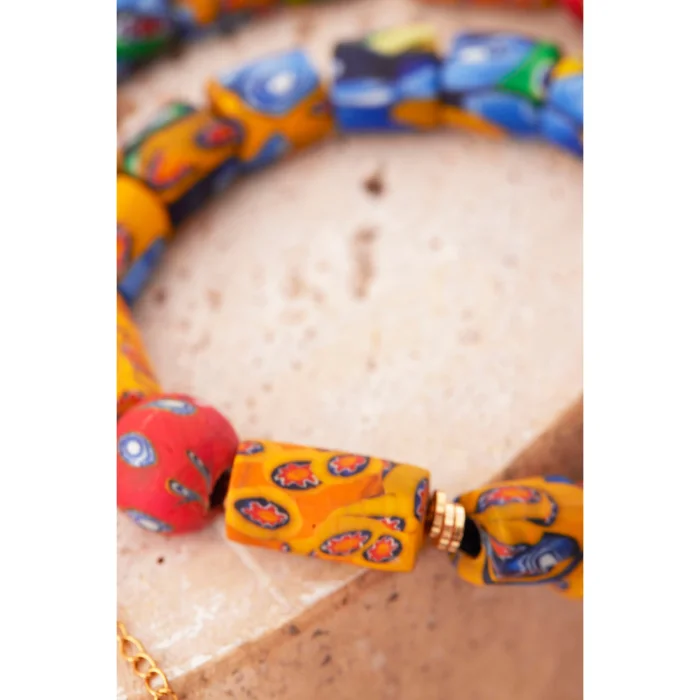 Algol Necklace is an elegant reflection of African handicrafts. Each bead is skillfully selected and carefully strung, giving the necklace both elegance and cultural depth. Bearing the rich cultural heritage and colorful texture of Ghana, this necklace will complement any outfit and add a touch of sophistication to your personal style. Not only eye-catching but also full of meaning, this necklace will add a special touch to every moment.
