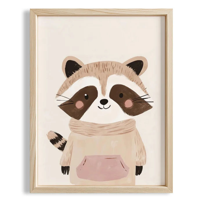 Atkılı Cute Raccoon - Boho Girls' Room Wooden Wall Art