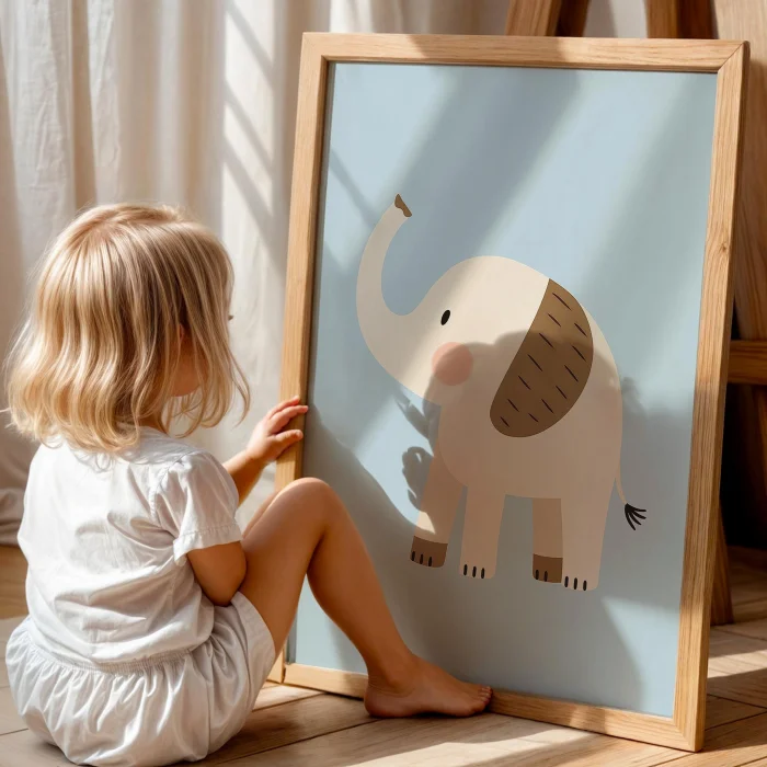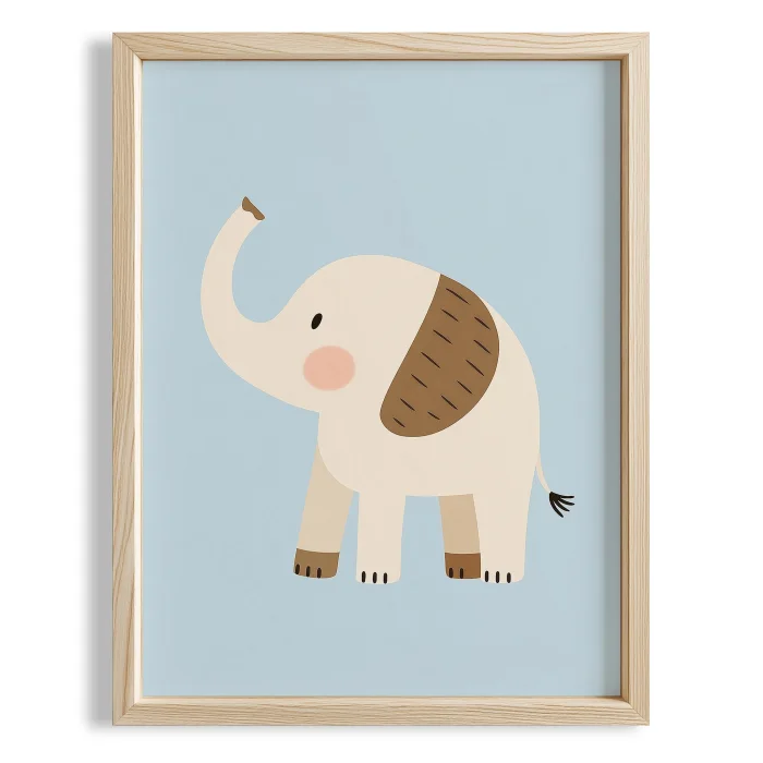 Product: Cute Elephant Blue Background Animal -themed Kids' Room Wooden Wall Art I