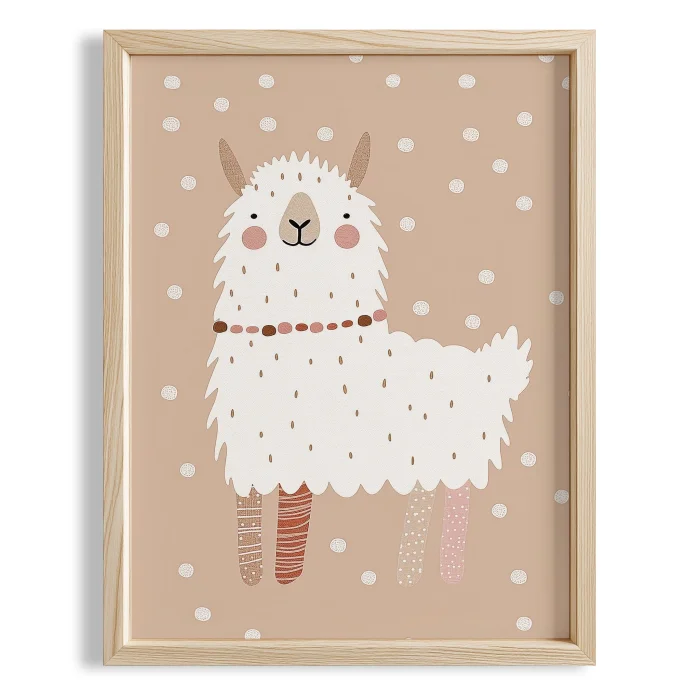 Cute Lama Children's Room Wooden Framed Wall Art