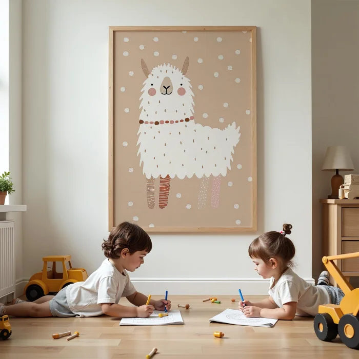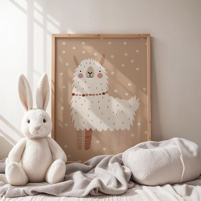 Product: Cute Lama Children's Room Wooden Framed Wall Art