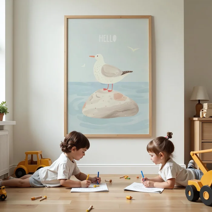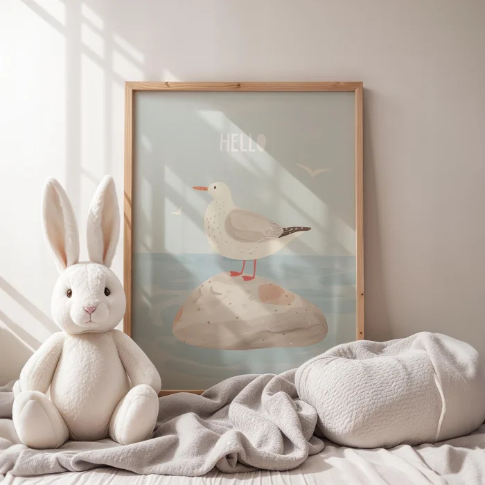 Product: Hello Text Beach And Seagull Kids Room Wooden Wall Art