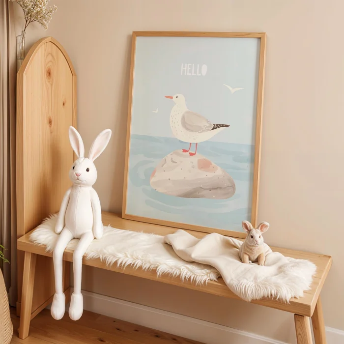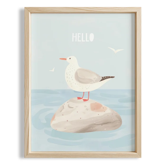 Product: Hello Text Beach And Seagull Kids Room Wooden Wall Art