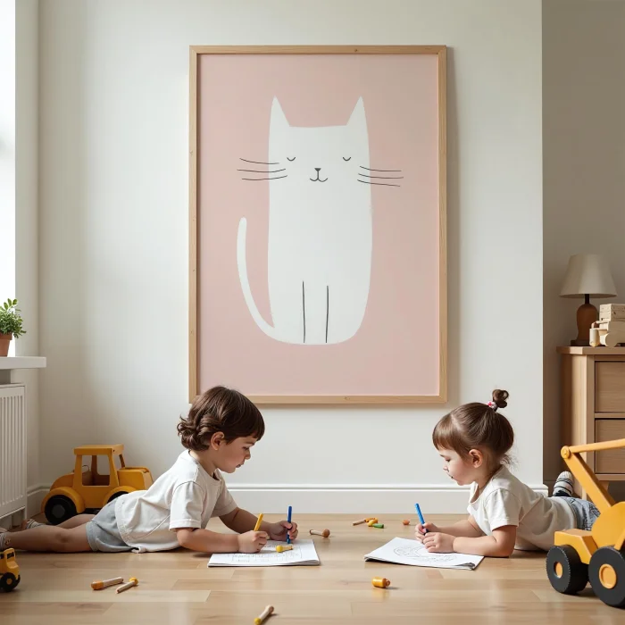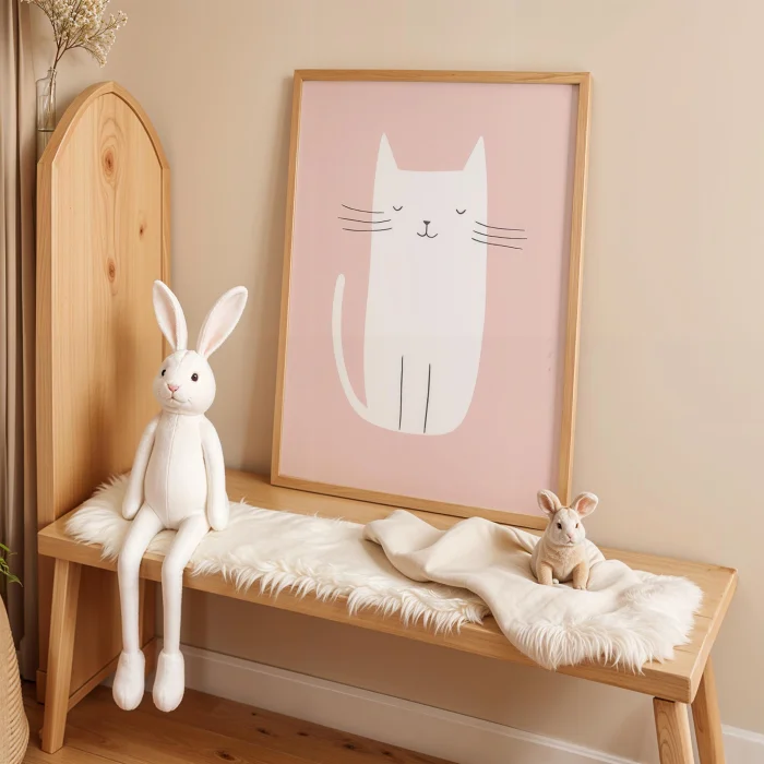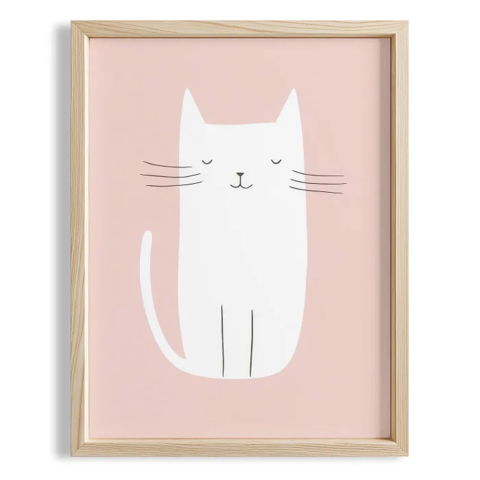 Product: White Cat - Pink Background Children's Room Wooden Framed Wall Art