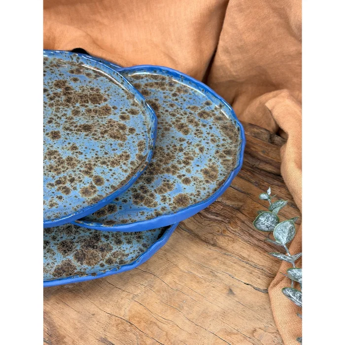 Product: Handcrafted 3-piece Blue Porcelain Plate Set - Brown & Blue Artistic Glaze