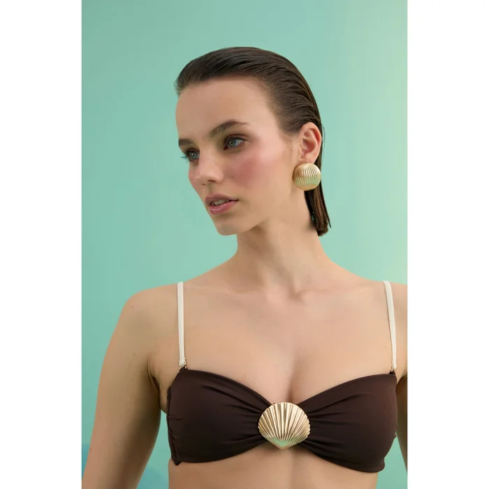 Shella Brunette Altın Deniz Kabuğu Aksesuarlı Yüksek Bel Straplez Bikini Takımı