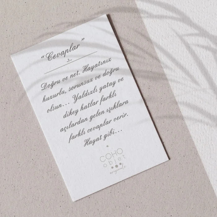 “Answers”: Correct and clear. Let your life be peaceful, smooth and correct… Gilded horizontal and vertical lines give different answers to the lights from different angles. Such as life…