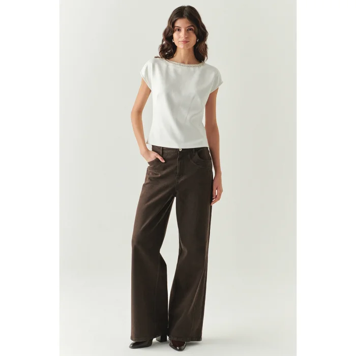 Product: Stone Detailed Boat Neck Sleeveless Regular Knitted Blouse