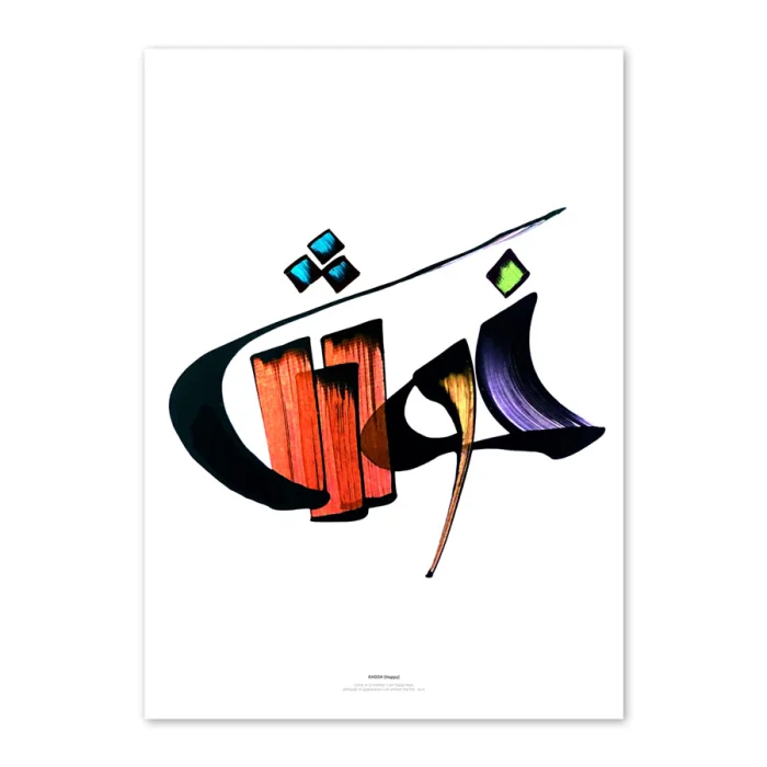 This is an open edition print from Mehdi Naghavi's calligraphic works. All orders are carefully packed in a protective card board tube, shipped with tracking number and insurance. The artwork is printed on Albrecht Dürer 210 gsm, an Acid- and lignin-free paper from Hahnemühle with a textured, Matt surface. The printer used to ensure long lasting beauty and value is Canon iPF8400, a large format inkjet printer using Canon's Lucia Ex pigment based archival inks, providing extremely rich colors and a first-class deep black.