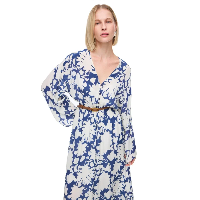 Pattern : Comfortable Fit Length : 141.6 Sleeve : Low Sleeve Collar : V-Neck Waist Length : 56 Chest : 106 Hip : 117 Back Medium Length : 137.6 Sleeve : Long Sleeve Model Length : Ankle Length Weaving-Knitting : WEAVING Gender : Female Place of Production : Turkey Pattern : Flower Blend : 100% Rayon Closure Type : Zipper Season : 2025 SPRING SUMMER Model Length : 178 Model Chest : 80 Model Waist : 59 Model Hips : 92 Model Size: 36/S Age Group: Women's Sleeve Length: Long Sleeve