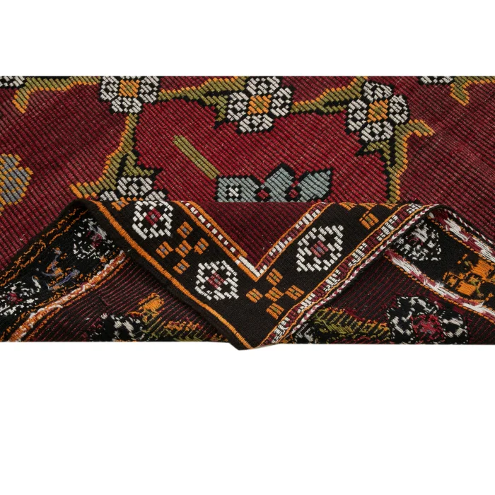 Vintage Cecim kilims are on 223 cm width and 326 cm length and the pile height is 5mm, the approximate weight of the rug is 15 kg. It’s % 100 handknotted wool and goat hair rug. It’s made from the natural dye.