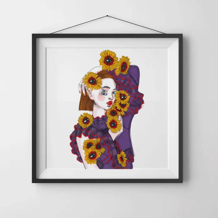 Drawings made with markers, dry and watercolors, then printed in giclée quality on 210g matte Hahnemühle enhanced paper. This technique; Art printing can capture 98% of the original colors, and these colors are preserved for about 200 years in a healthy way. *Will be sent by roll without frame. *Print size is 33x33. *Frame allowances are given extra. *Not dimensioned