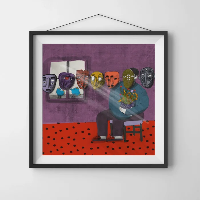 Drawings made with markers, dry and watercolors, then printed in giclée quality on 210g matte Hahnemühle enhanced paper. This technique; Art printing can capture 98% of the original colors, and these colors are preserved for about 200 years in a healthy way. *Will be sent by roll without frame. *Print size is 60x60. *Frame allowances are given extra. *Not dimensioned