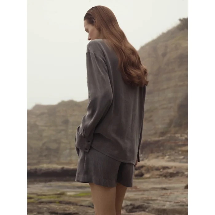 Pleated shorts crafted from bamboo-blend fabric.