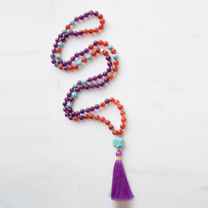 All our malas are knotted by hand on a special cord with semi-precious gemstones. Each bead is saged to be cleaned energetically and energized in full moon rituals. All your orders will be delivered in its special cloth bag in a craft box accampanied with sage to be saged before wearing.