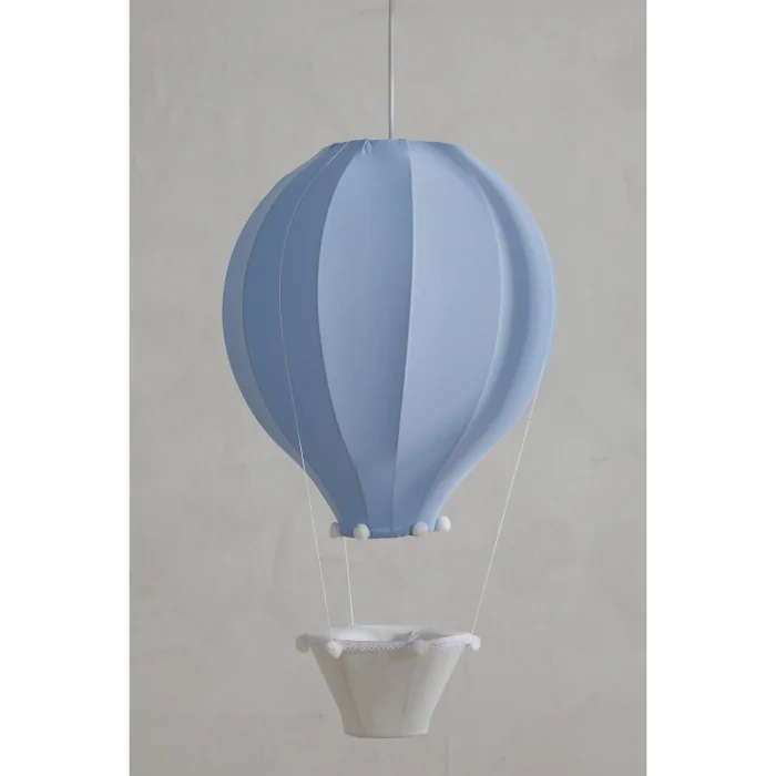 Our lighting in the form of a gray flying balloon is available on a larger scale and without a basket.