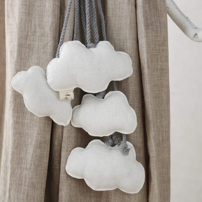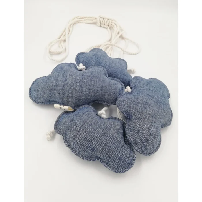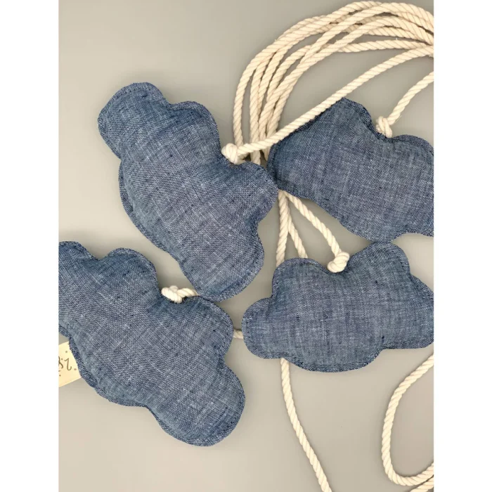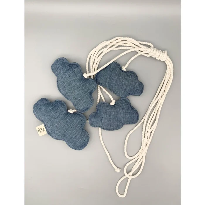 Made of jean fabric, this curtain holder, consisting of 4 clouds, is made of 100% linen fabric. It is a simple but stylish accessory that you can easily tie to your curtain with cotton ropes. There are 3 different color combinations.
