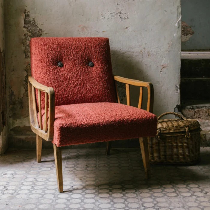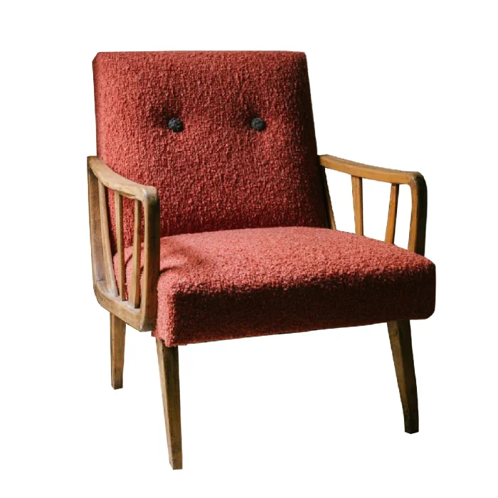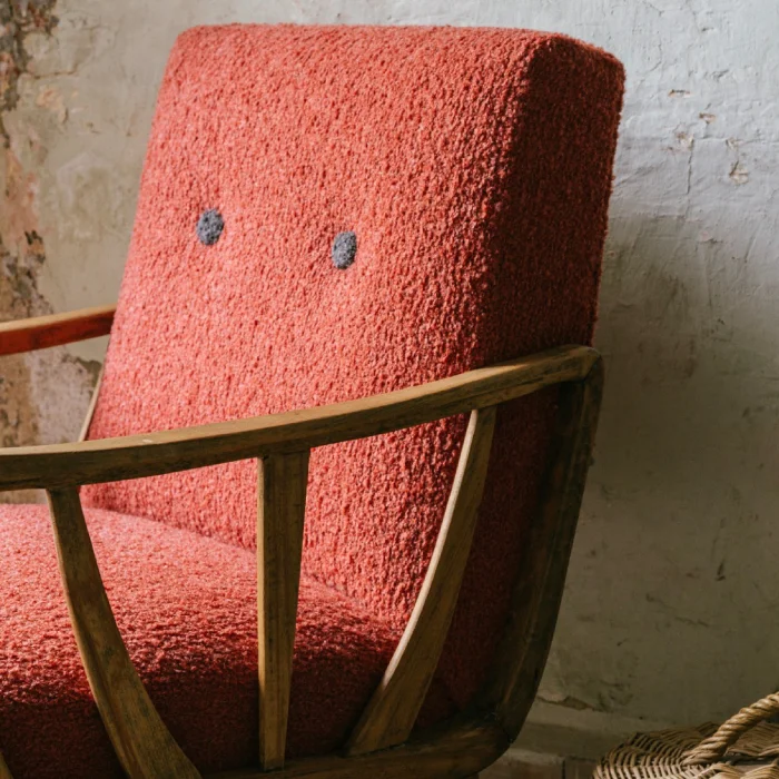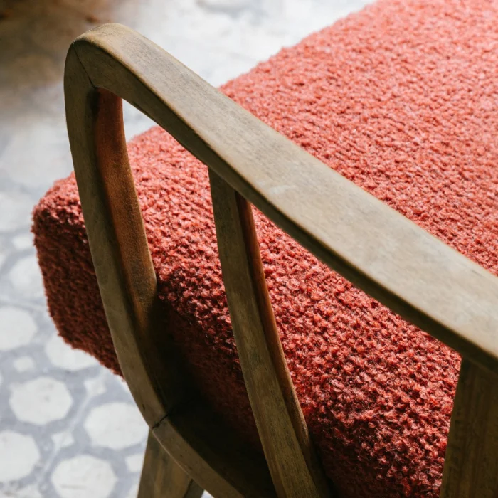 Product: Lana Wool Boucle Handmade Distressed Wood Armchair