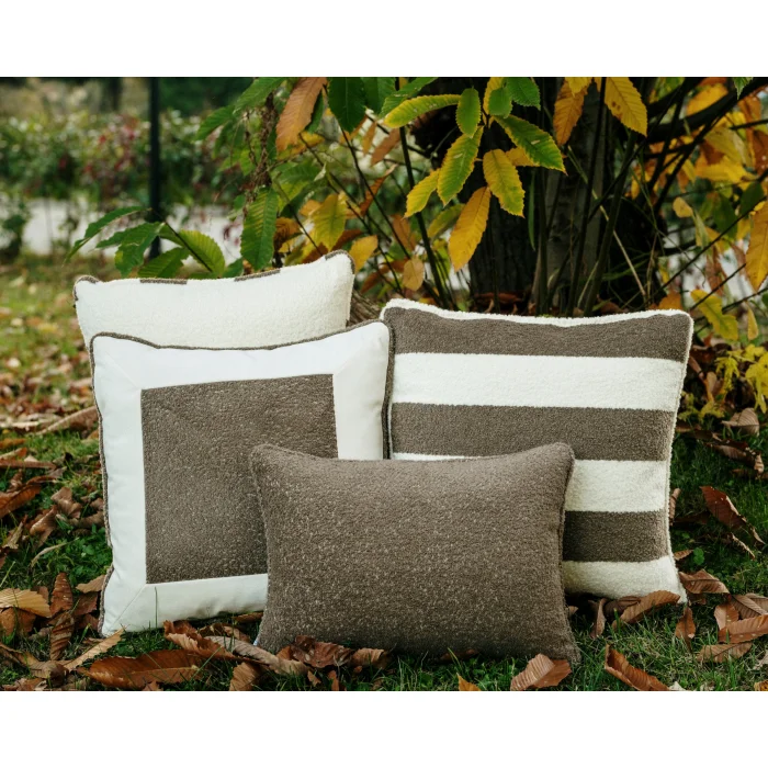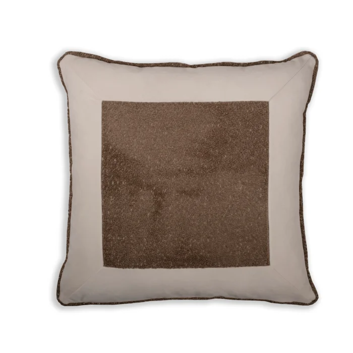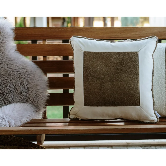 Material: 100% Polyester Frame Form. Brown - Cream Soft Textured Special Woven Fabric 900 GSM, 100,000 Martindale fabric features High standards of craftmanship Double-sided Decorative pillow is sent with filling inside. The pillow has a hidden zipper.