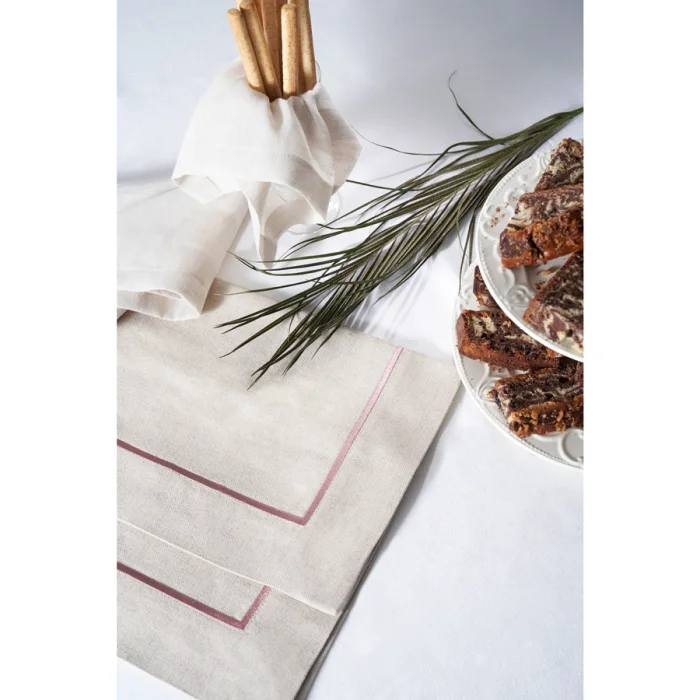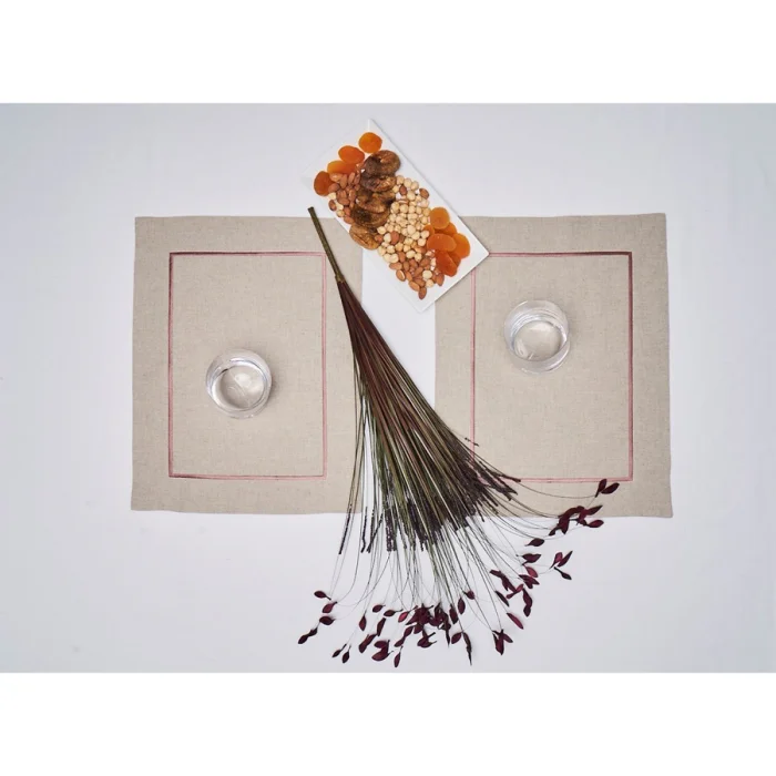 Special design placemat with champagne pink single embroidery line. Washable linen. It is the price of one product. You can create a set in different amounts you prefer.