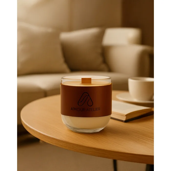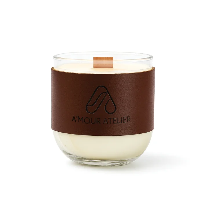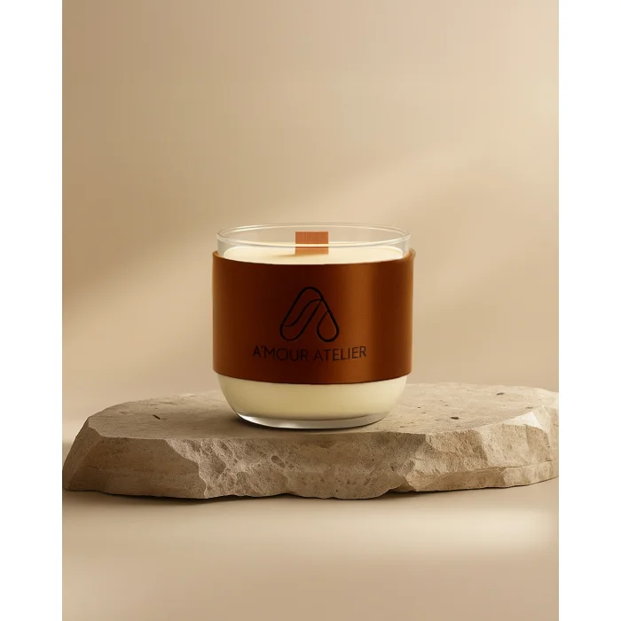 Leather Covered Glass Candle – Brown Leather Detailed – 477g