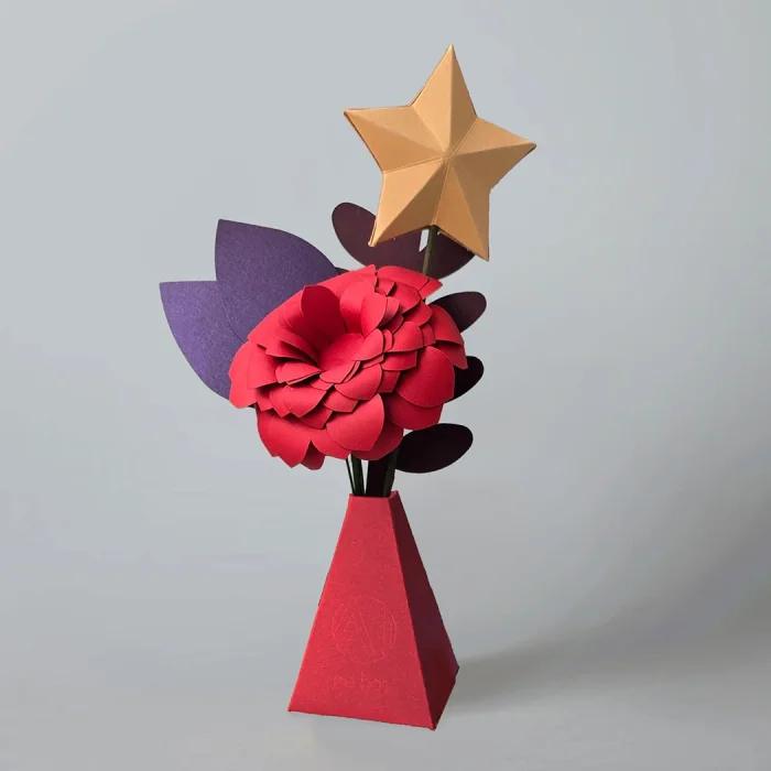 Flowers: It is produced from imported cardboard weighing 160-300 gsm, pulp dyed, FSC, PEFC certified. Vase: Wooden, handmade. The vase height is 12cm, and the total product height is about 25cm. Our bouquet is sent in a wooden vase. Packaging: You can add the note you want to convey to your loved one to the label. In this way, you will make a final original touch to your gift. Our paper flower bouquets; We ship cargo between cities and within Istanbul. Exclusive Original Designs We offer unique, stylishly designed and permanent gifts for Valentine's Day, Mother's Day, Birthday, Baby Room, Hospital Room, New Birth Gift, New Job Gift, Teacher's Day, Anniversary Gift and New Home Gift. You can also make a nice surprise for your friend, yourself, loved ones, lover and mother without looking for a special day. Allergy-Free Compared to live flowers, it does not cause allergies and is long-lasting. You can use it in hospitals and baby rooms with peace of mind and give it as a gift. Handcrafted Inspired by nature and our imagination, we design each flower down to the smallest detail. All products are our own design, handcrafted and handmade. Eco-Friendly The imported cartons used are certified with FSC, PEFC, ECF. These certificates certify that they are obtained from sustainable forests with controlled cutting. It can also participate in recycling.