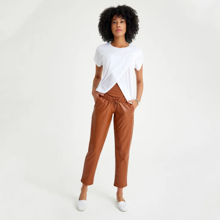 Product: Comfy Cool Foldover Waistband Faux Leather Maternity Jogger Pants