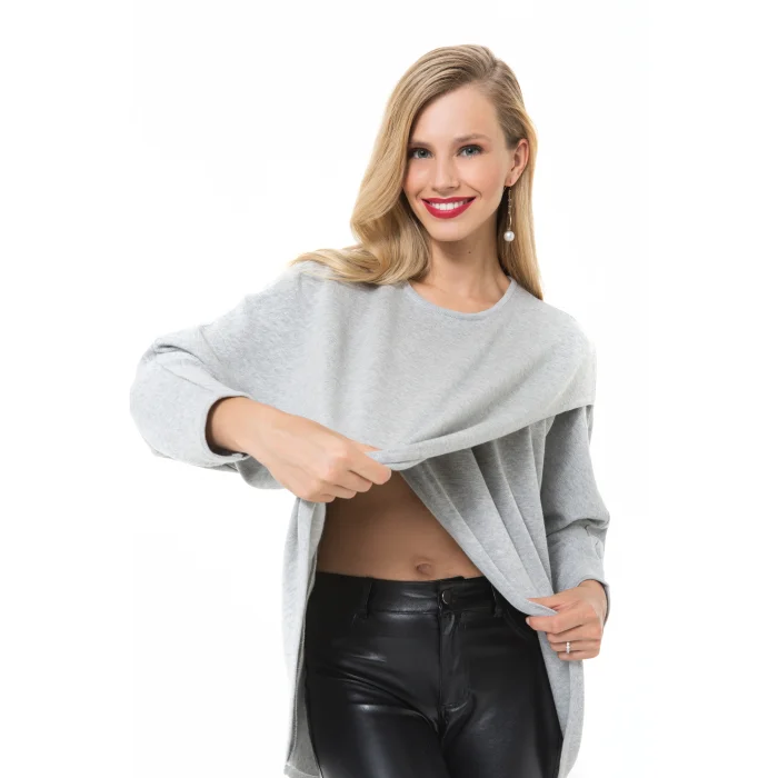 Made entirely of imported cotton, this knitwear sweater can be worn in all seasons. It is a timeless piece that you can use during pregnancy, breastfeeding and beyond. It is differentiated by its model as well as its breathable and skin-friendly texture. Thanks to the bat wings that open from the front to both sides, you can easily breastfeed anywhere without using a nursing shawl.