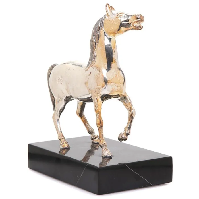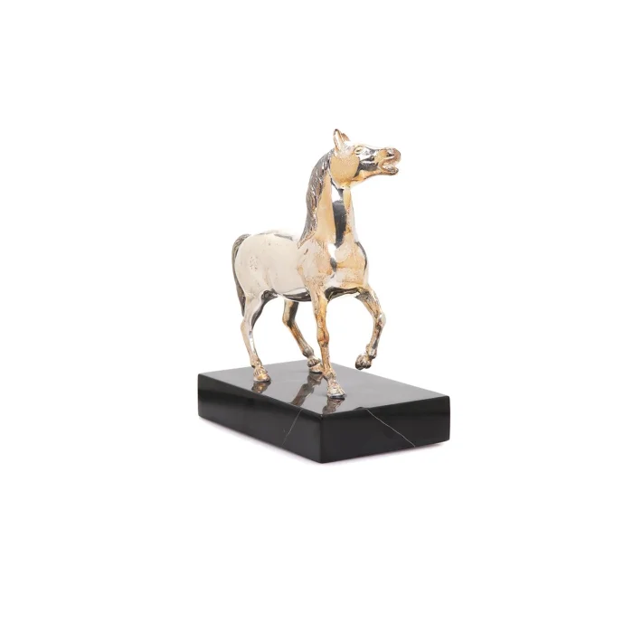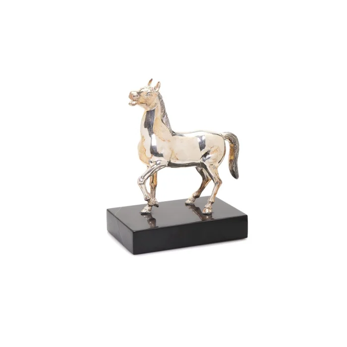 Length: 12 cm Height: 22 cm Gold/MarbleDecorative object made of small silver-plated horse and black marble
